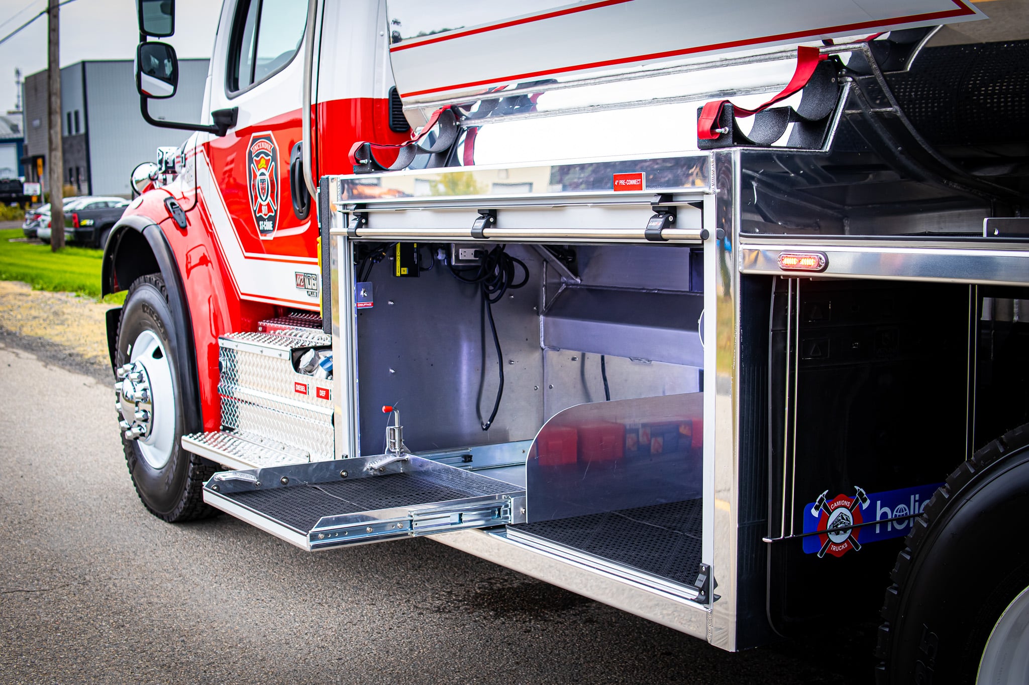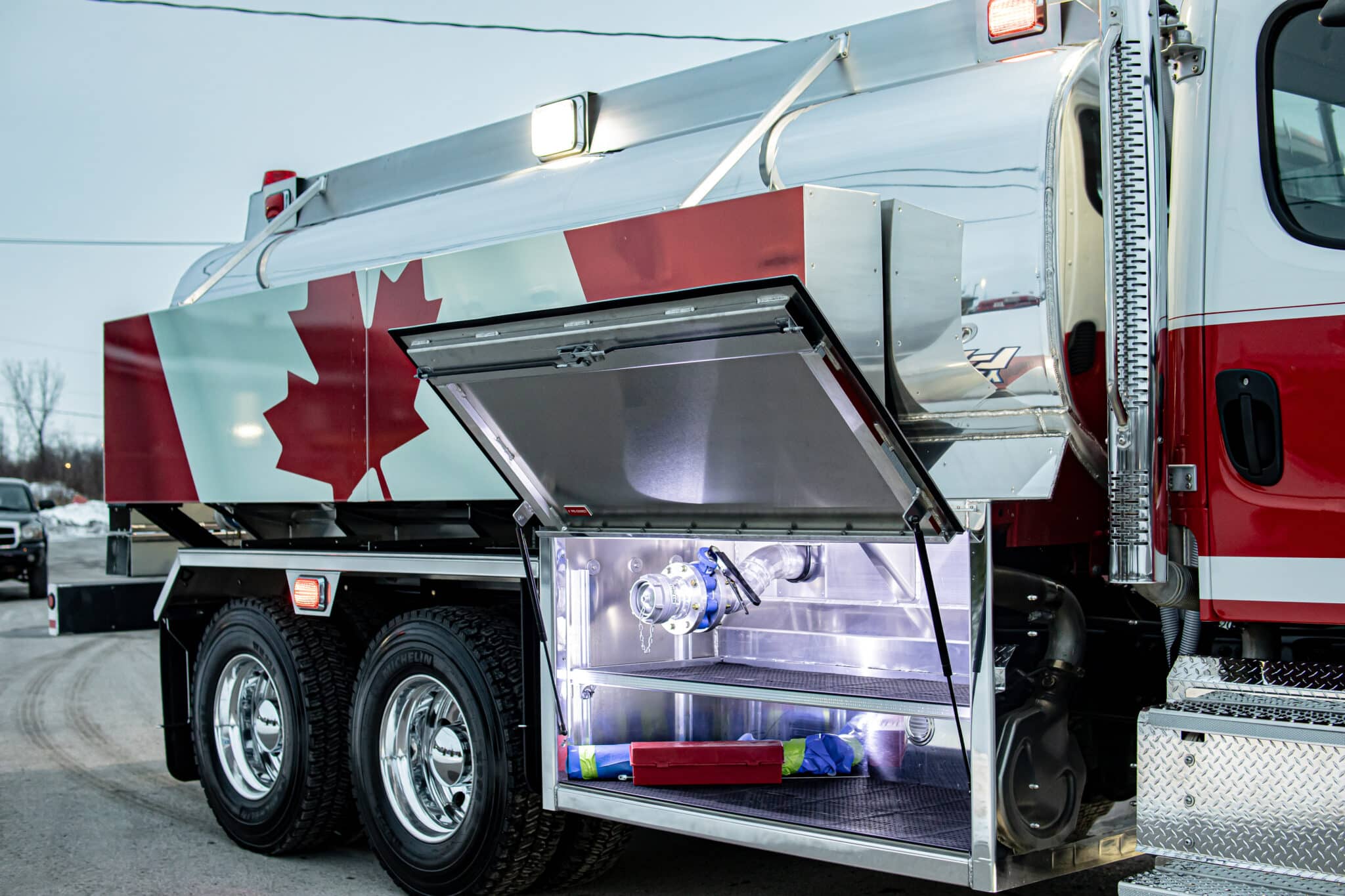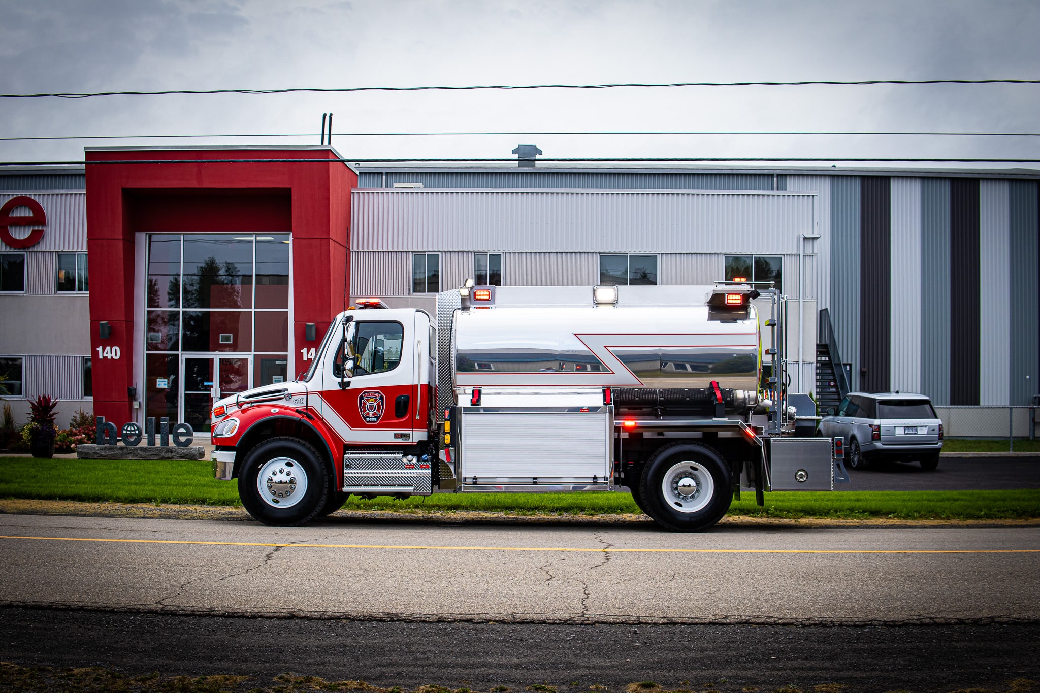 Ce modèle est présenté à titre d’illustration uniquement, afin de montrer le résultat final une fois le camion-citerne terminé. Le châssis Freightliner est actuellement disponible et peut être réservé dès maintenant pour la conception et la construction d’un véhicule entièrement personnalisé, adapté à vos besoins opérationnels.